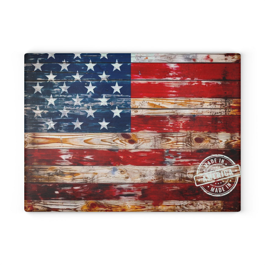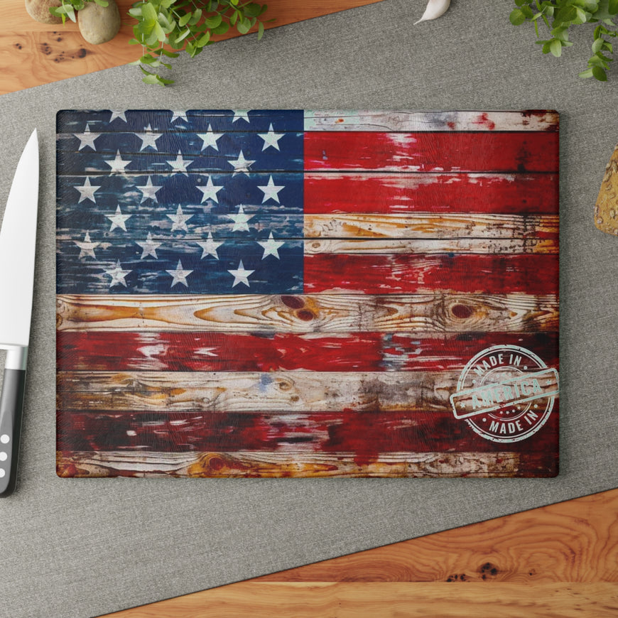 American Flag Glass Cutting Board, Patriotic Kitchen Decor 11X5, Made In America