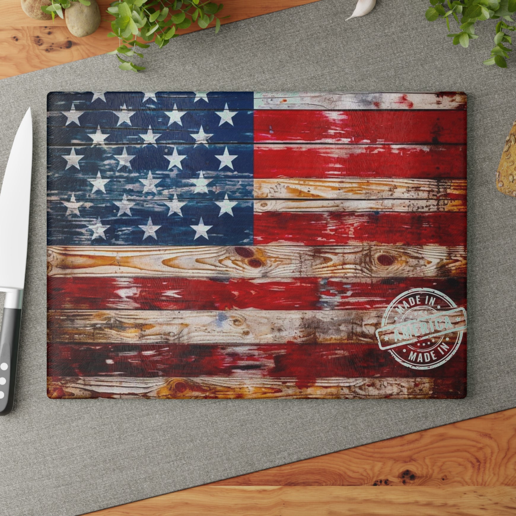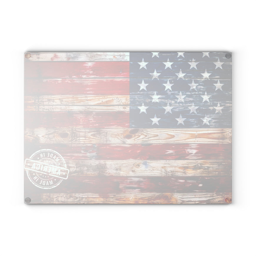 Introducing our stunning Glass Cutting Board, the perfect blend of functionality and artistry for your kitchen! This vibrant cutting board features a unique American flag design that adds a rustic yet elegant touch to your home. It provides a sense of pride and nostalgia, making it an ideal centerpiece for your culinary space. Perfect for anyone who loves to cook or entertain, this cutting board is not only a practical tool but also a conversation starter. It's great for holidays like Independence Day, Memorial Day, and everyday gatherings. Whether you're a seasoned chef or a casual cook, this board will elevate your food prep experience!