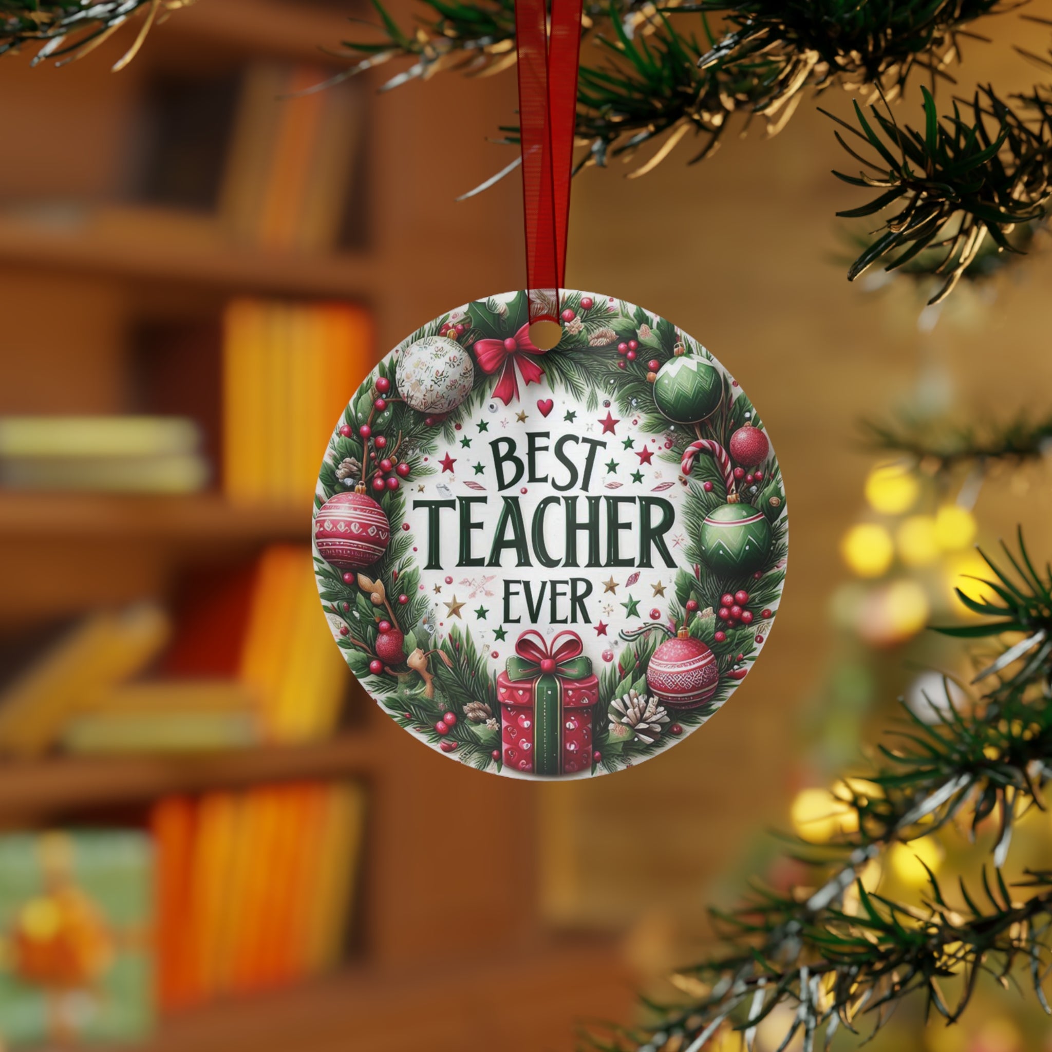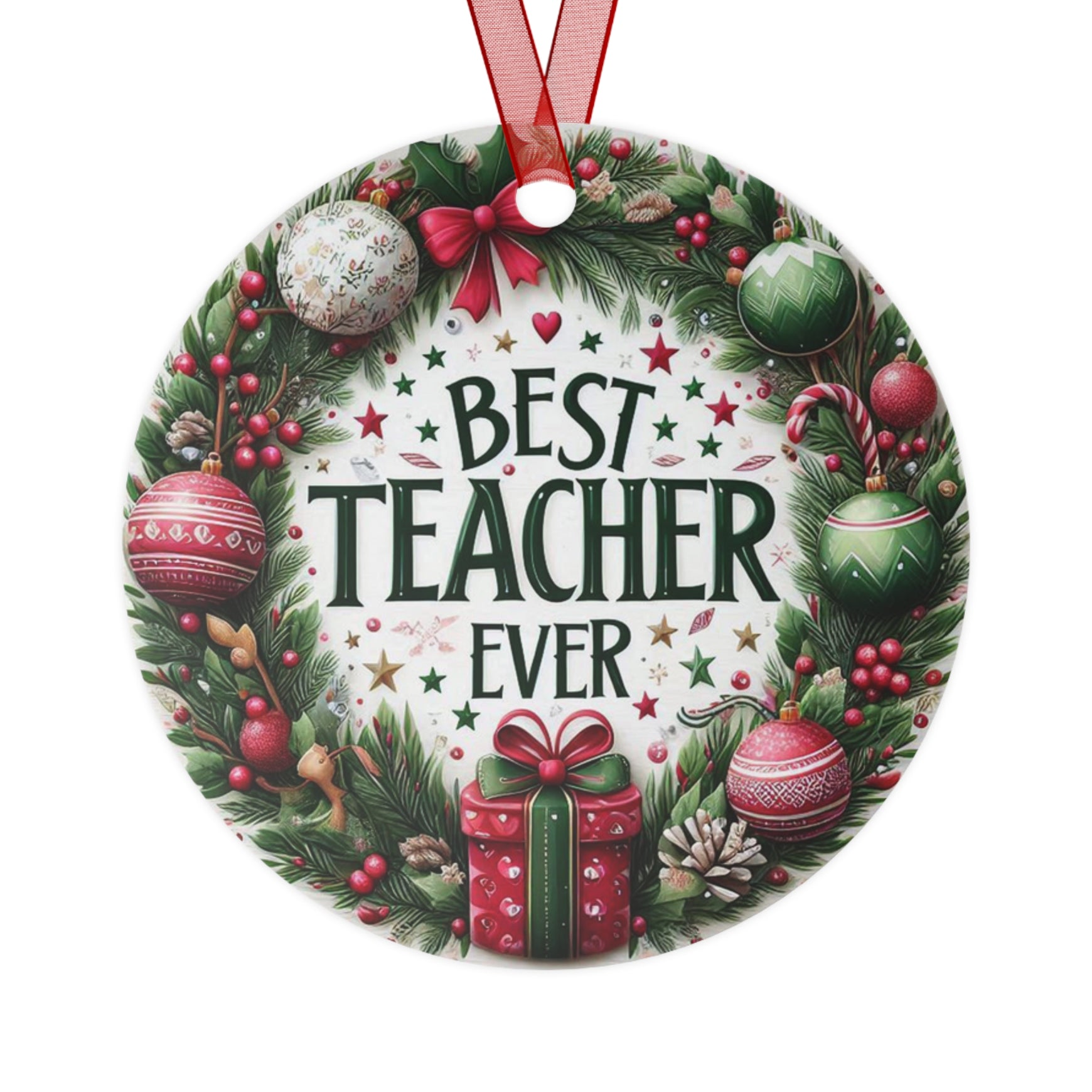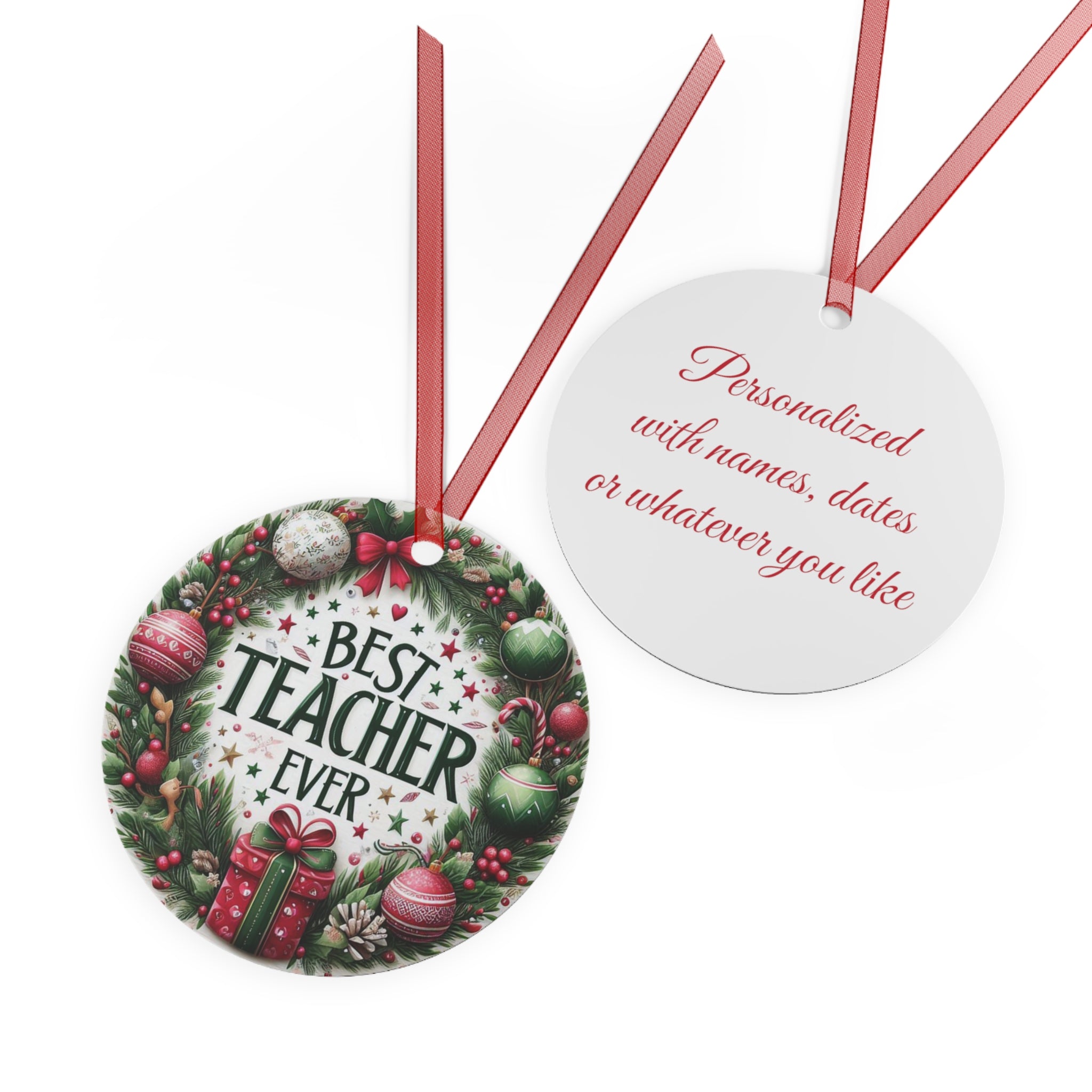 Personalized Best Teacher Ever Metal Christmas Tree Ornament, Custom Christmas Ornament, Customized Teacher Gift,